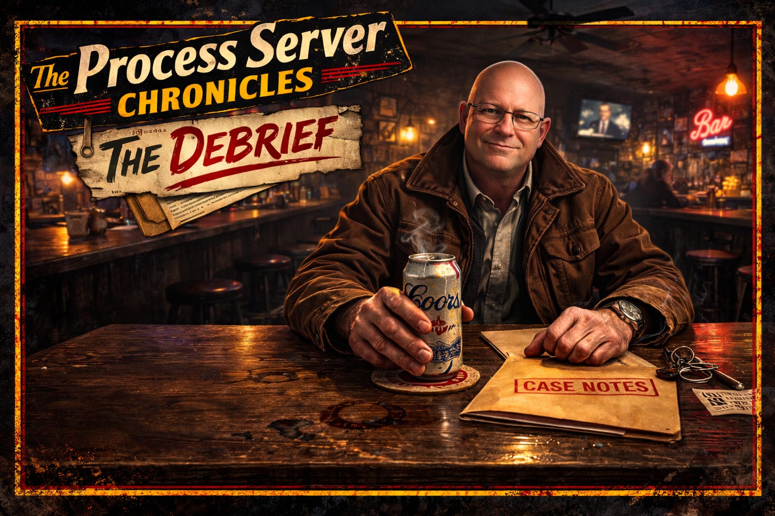 The Process Server Chronicles drops every Sunday. Free through first three Case Files. Then $80/year for Insider Access.